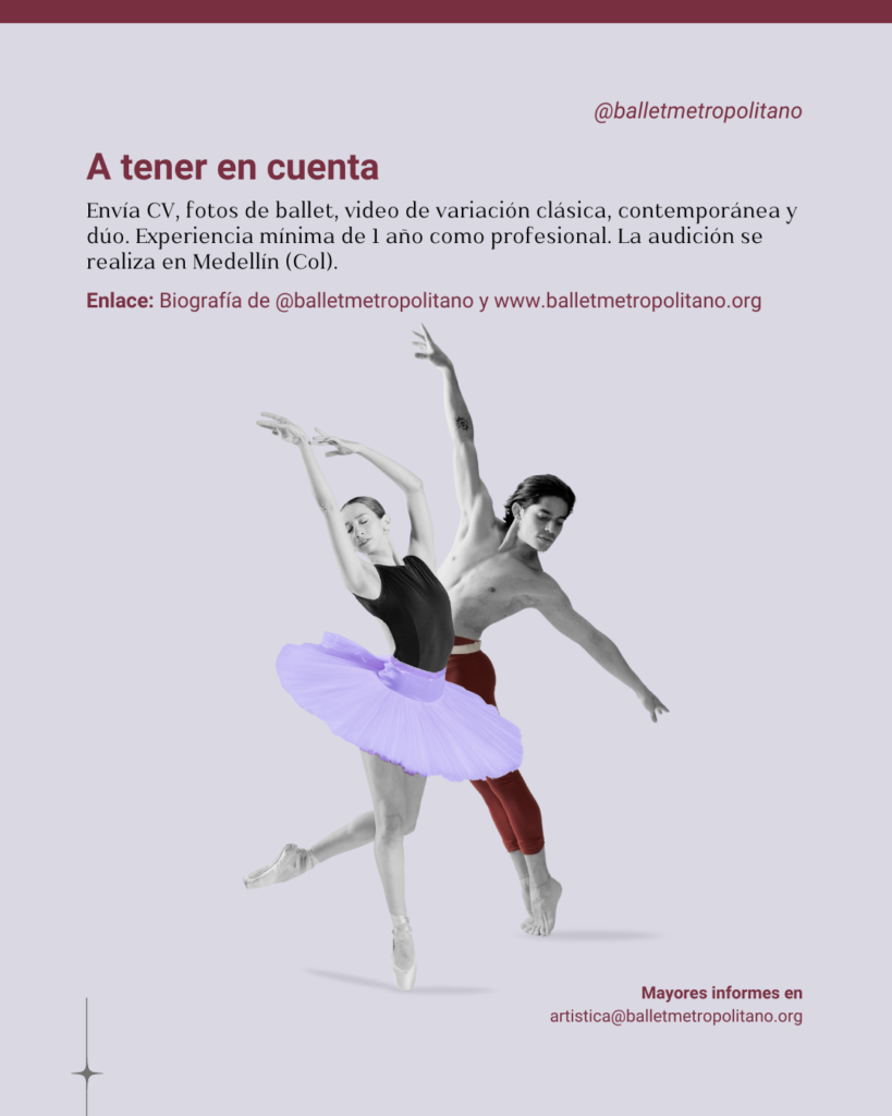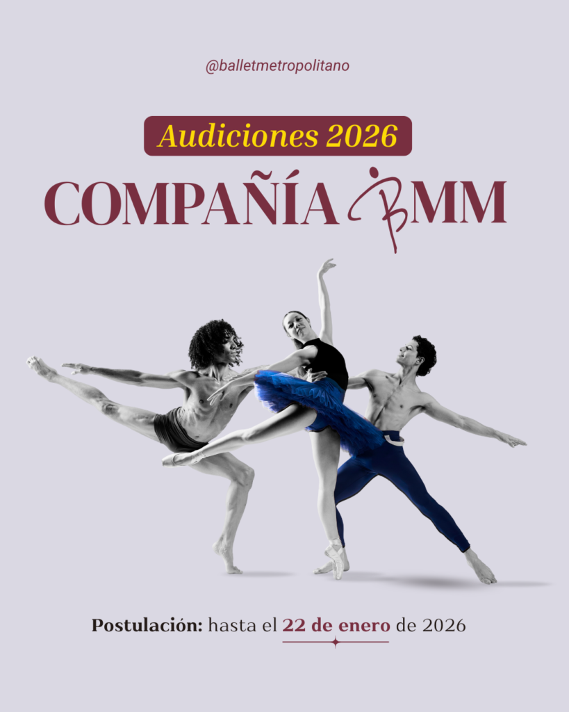Abiertas las Audiciones para integrar la Compañía profesional del Ballet Metropolitano de Medellín. Plazo de postulación jueves 22 de enero de 2026.